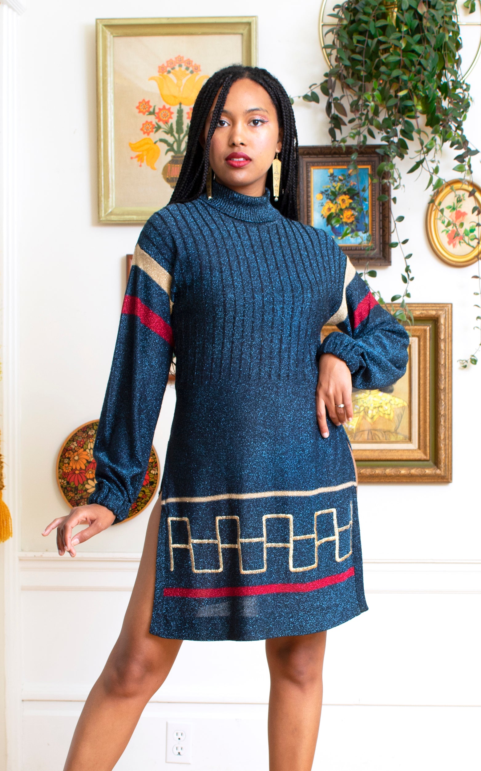 1950s Teal Sharkskin Shirtwaist Dress | small