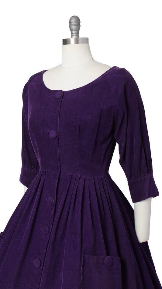 1950s Purple Corduroy Shirtwaist Dress | small/medium