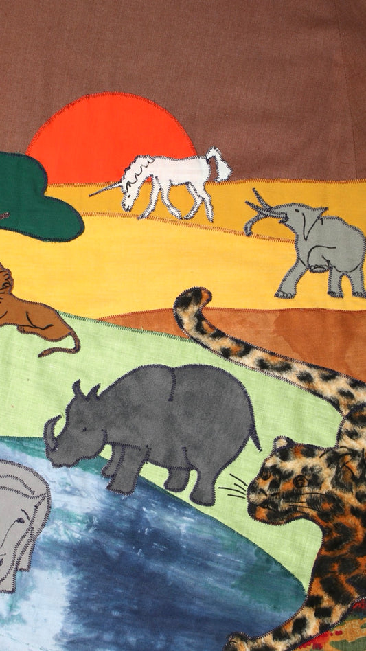 1970s Hand-Appliquéd "Water Hole" Novelty Border Print Skirt | small