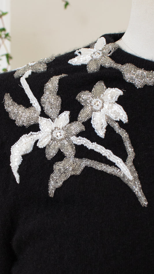 1950s Beaded Cashmere Cardigan | x-small/small/medium