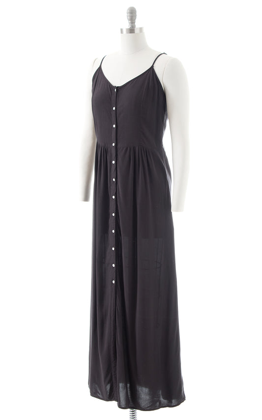 $65 DRESS SALE /// 2000s Black Rayon Button Up Midi Dress