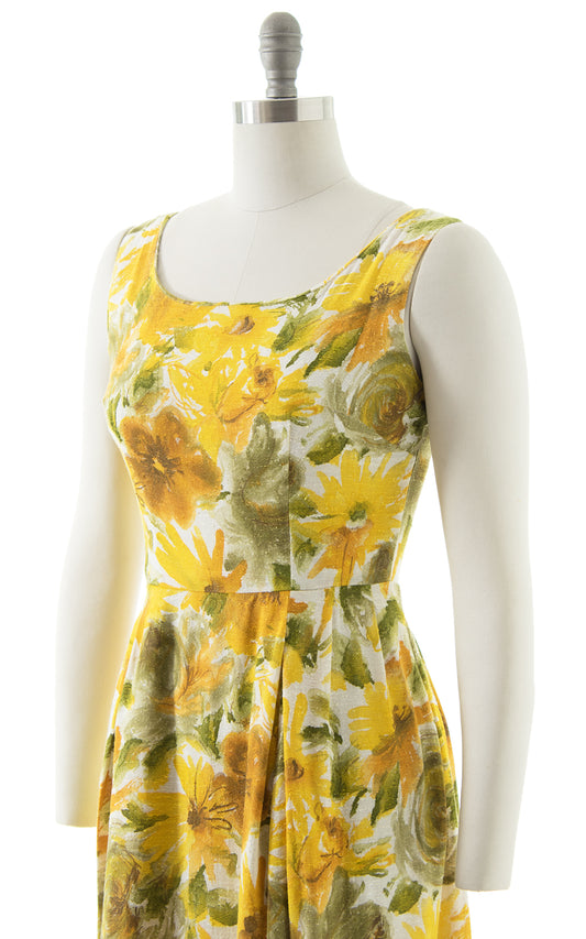 $65 DRESS SALE /// 1960s 1970s Yellow Floral Cotton Maxi Sundress | small