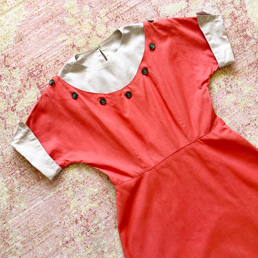 [AS-IS] 1940s Color Block Linen Dress | medium