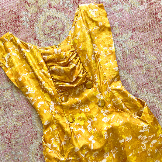 [AS-IS] 1940s Rayon Crepe Buttercup Dress | small