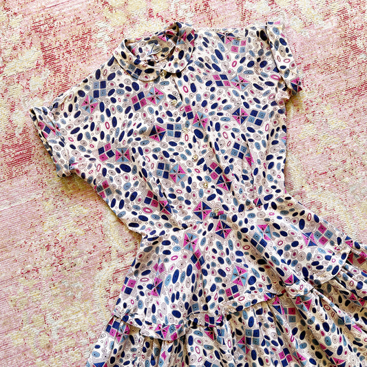 [AS-IS] 1940s Printed Rayon Dress | small