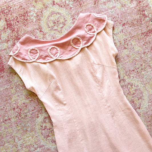 [AS-IS] 1950s 1960s Soutache Linen Wiggle Dress | small/medium