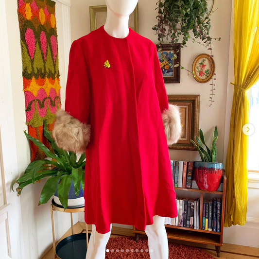 [AS-IS] 1960s Fox Fur Trim Coat | medium