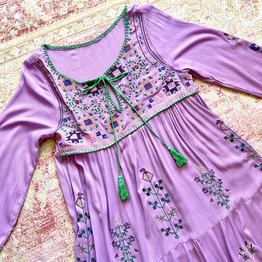 [AS-IS] Modern 1970s Style Embroidered Maxi Dress | small/medium