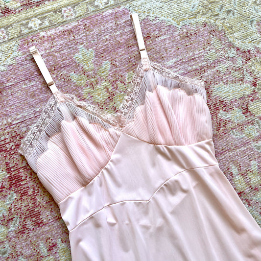 [AS-IS] 1940s Pink Ruffled Slip | small/medium