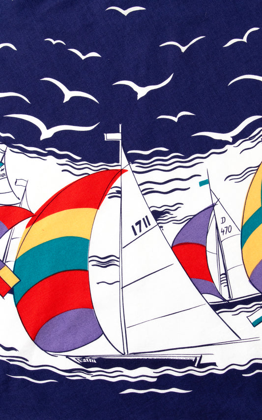 1970s does 1950s Sailboat Novelty Border Print Circle Skirt | small