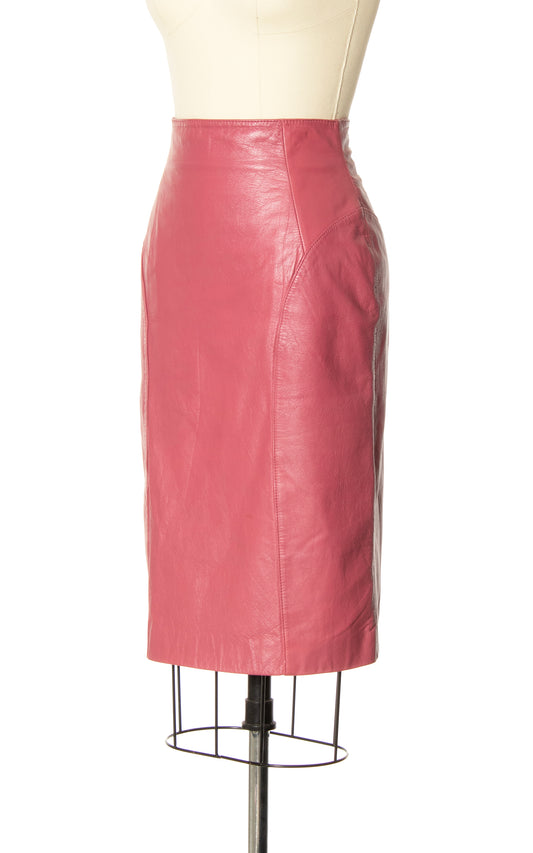 1980s Pink Leather Pencil Skirt | small