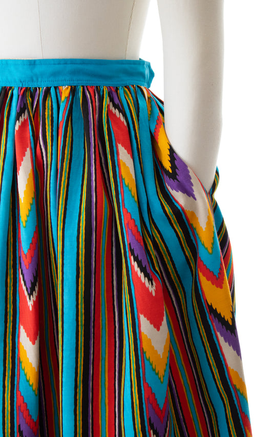 1970s Chevron Striped Rayon Faille Maxi Skirt with Pockets | small