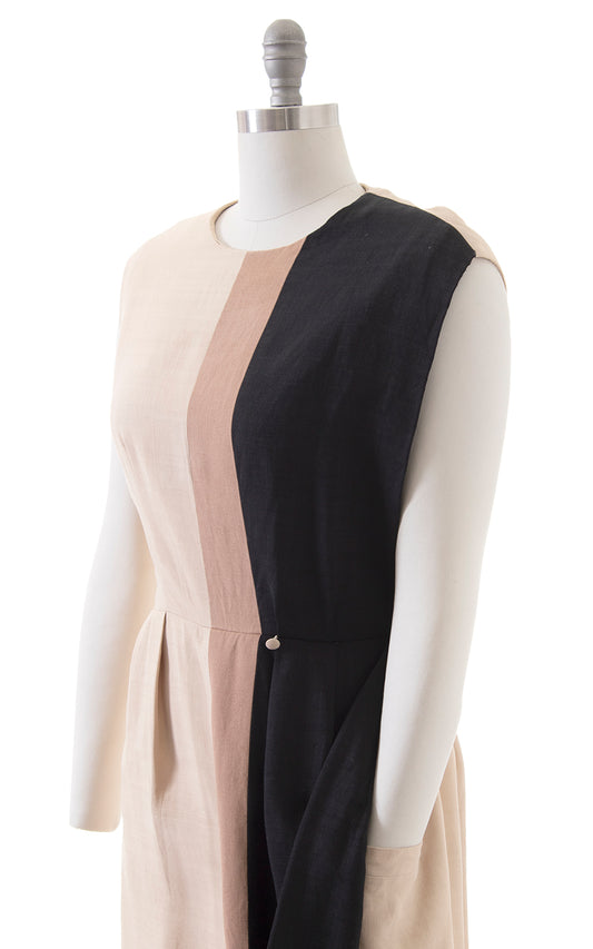 1950s NINA RICCI Color Block Linen Sheath Dress with Hidden Pocket | medium