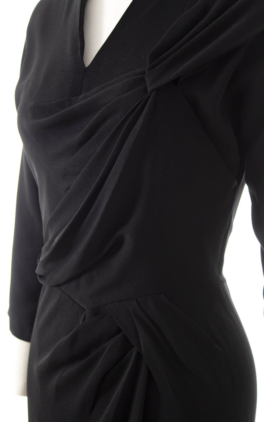 1940s DOROTHY O'HARA Black Rayon Draped Wiggle Dress | small
