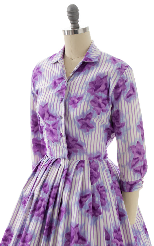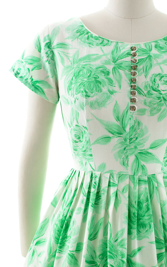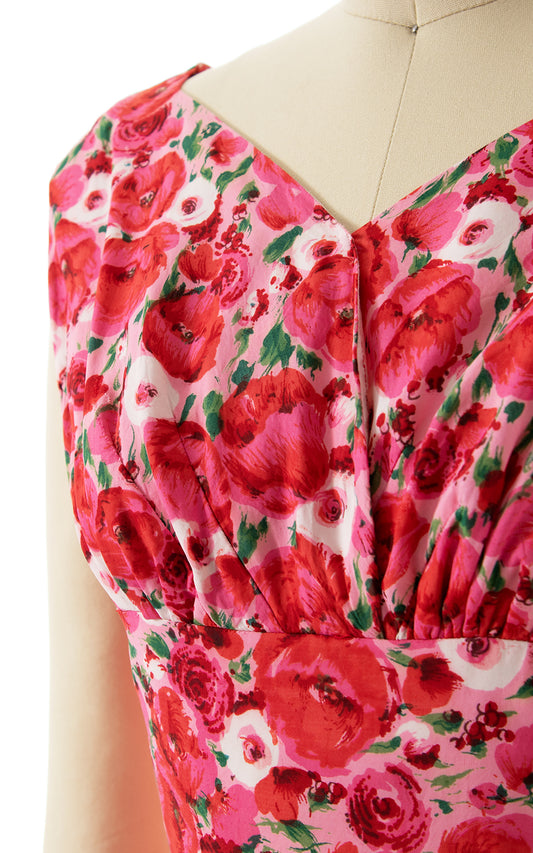 1950s Rose Striped Cotton Voile Sundress | x-small