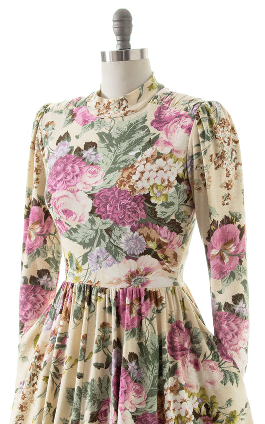 1980s 1990s Floral Cotton Jersey Dress with Pockets | small
