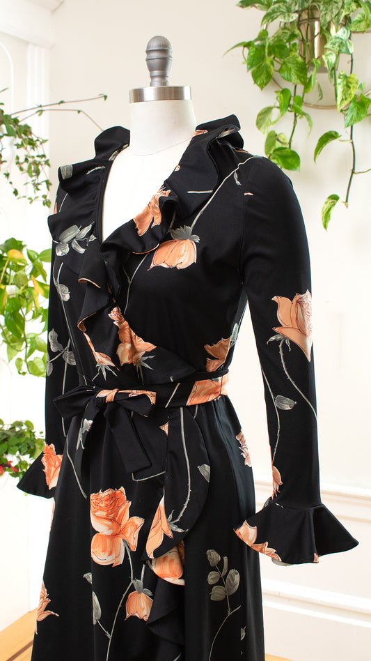 1970s Peach Rose Wrap Dress | small/medium
