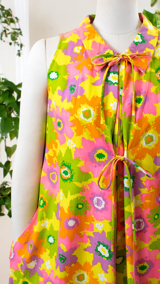 1970s Hawaiian Floral Ombré Accordion Pleated Kaftan | xs-xl