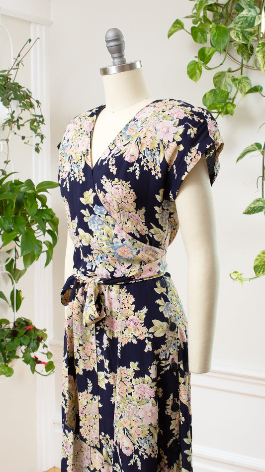 2000s Floral Rayon Crepe Wrap Maxi Dress | small/medium