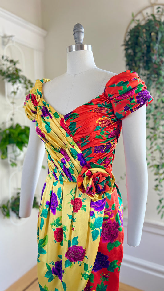 2000s Sequin Roses Bias Cut Rayon Dress | medium/large