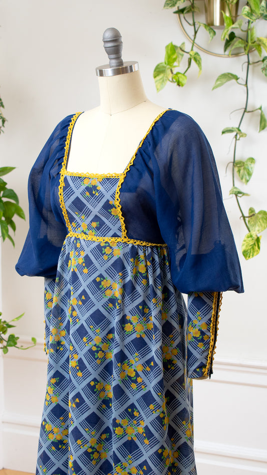 1960s GUNNE SAX Black Label Floral Plaid Maxi Dress | x-small