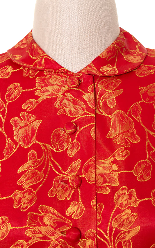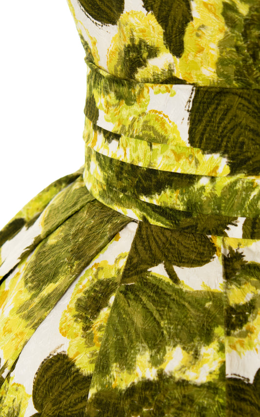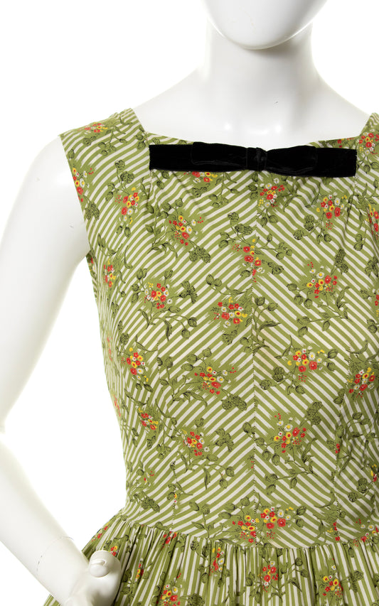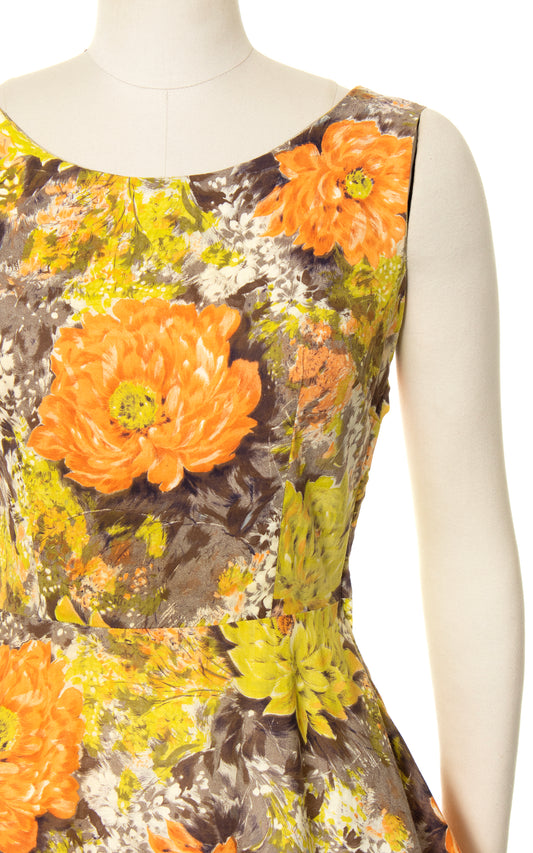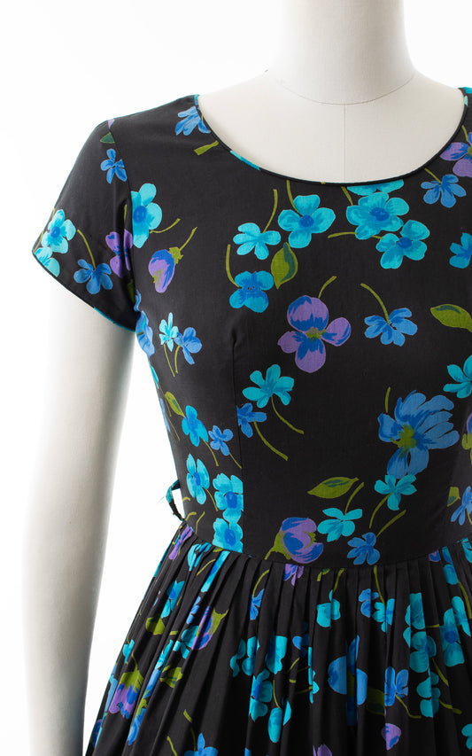 1950s 1960s Floral Cotton Cummerbund Dress | small