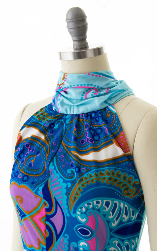 1960s 1970s Floral Halter Maxi Dress | x-small