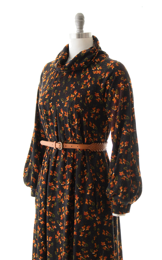 1970s Floral Jersey Trapeze Dress with Pockets | x-small/small/medium