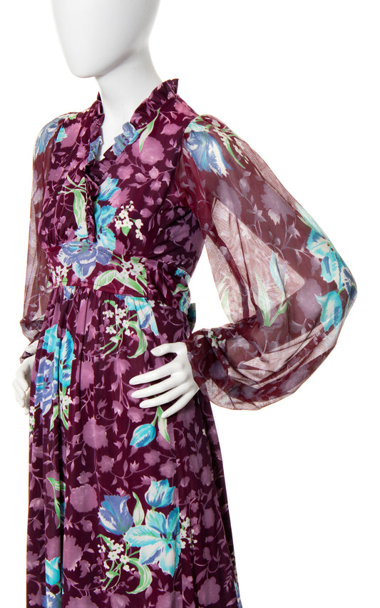1970s Sheer Balloon Sleeve Maxi Dress | x-small