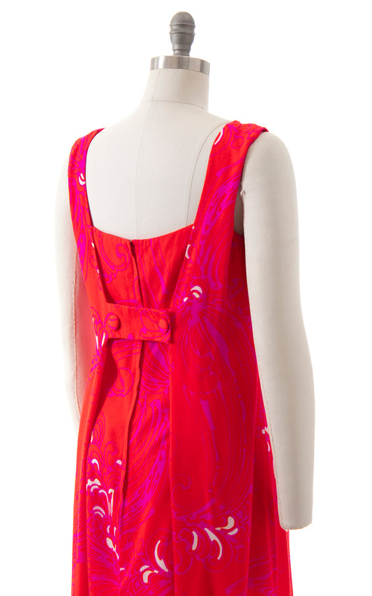 1970s Neon Psychedelic Barkcloth Maxi Dress | small/medium