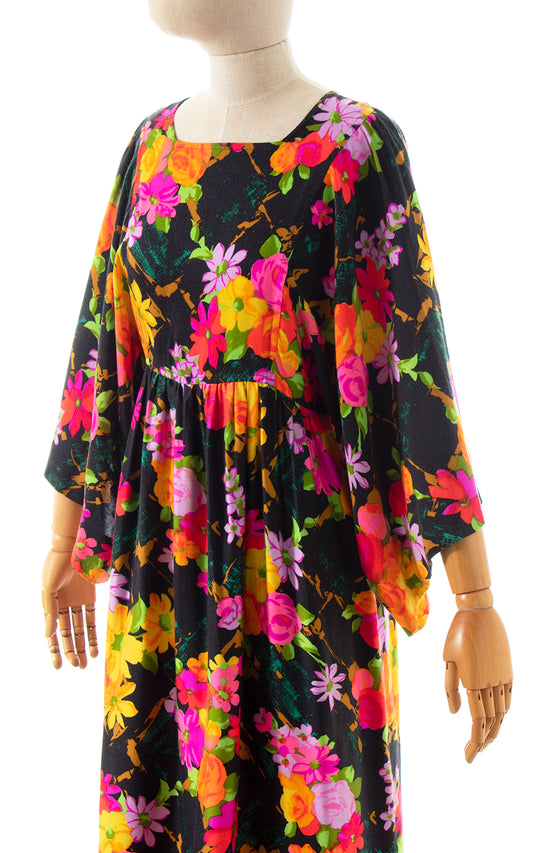 1970s Floral Kimono Sleeve Maxi Dress | small/medium