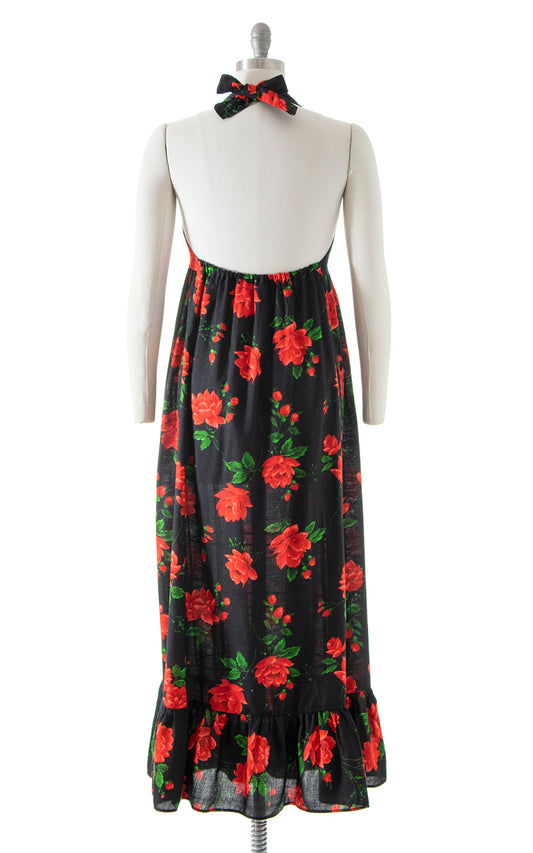 1970s Roses Halter Maxi Dress | x-small/small/medium
