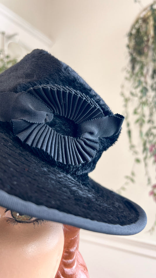 1930s Black Faux Fur Tilt Hat