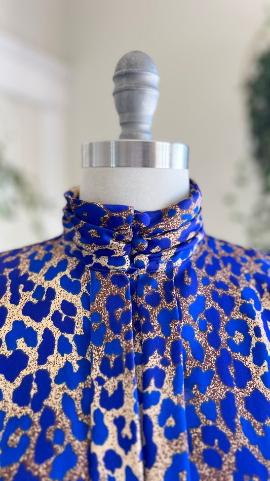 1980s Blue Leopard Print Blouse | medium/large