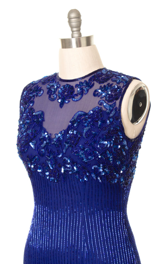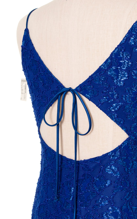 2000s Y2K DEADSTOCK Metallic Lace Open Back Gown | medium/large