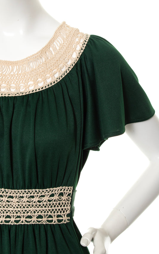 1970s Crochet Trim Jersey Maxi Dress | x-small/small/medium/large