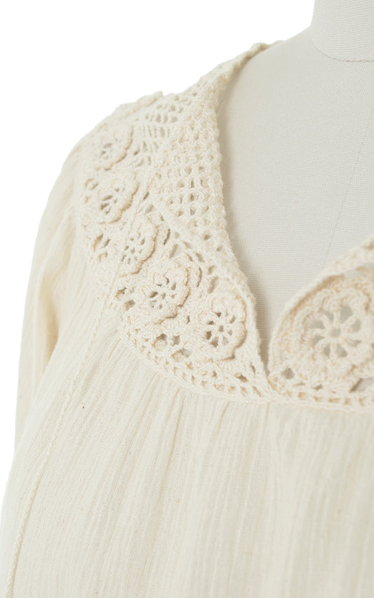 1970s Cream Cotton Gauze & Crochet Dress | small/medium/large