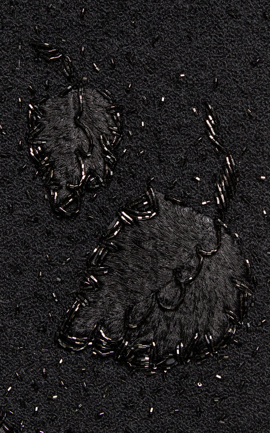 1950s Leaf Beaded Knit Black Wool Sweater Dress | small/medium/large