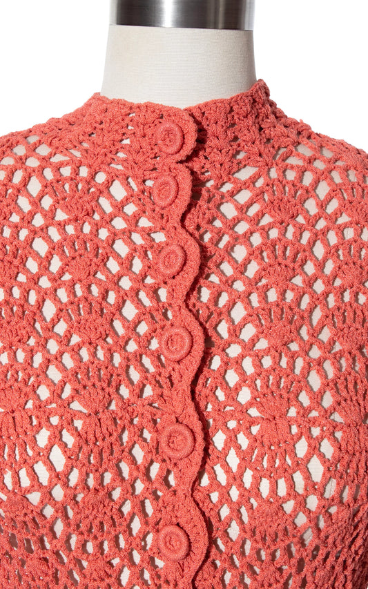 1970s Peach Crochet Sweater Dress | x-small/small/medium/large