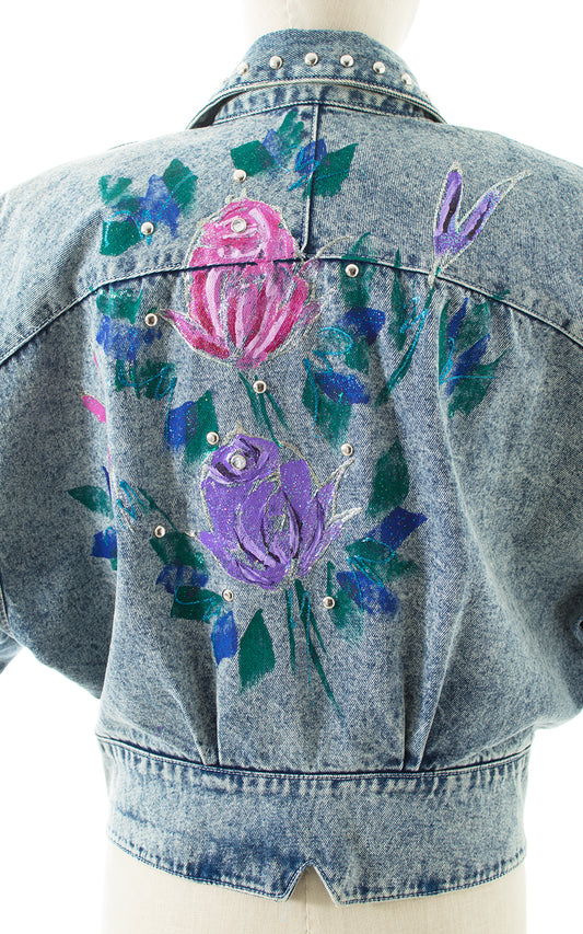 1990s Hand-Painted Glitter Roses Studded Jean Jacket | large