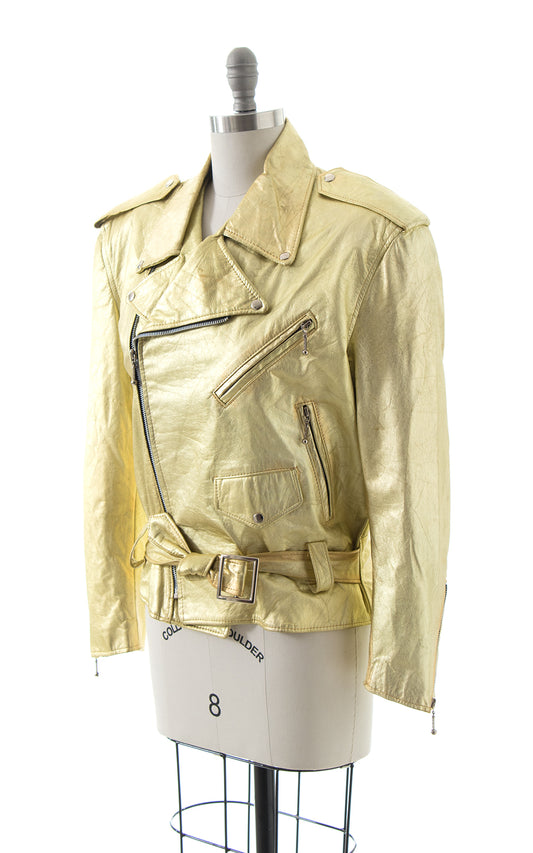 1980s Metallic Gold Leather Moto Jacket | large/x-large