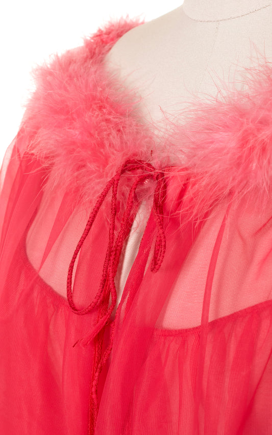1960s Marabou Nylon Chiffon Peignoir Set | large/x-large