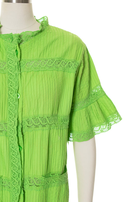 1960s 1970s Pintuck Cotton & Lace Swimsuit Coverup | small/medium