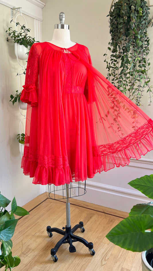 Vintage 1950s Red Peignoir Set | small/medium/large