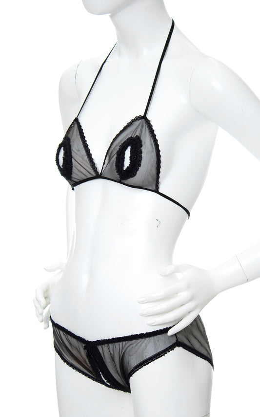 1980s 1990s Ruffled Cutout & Crotchless Black Lingerie Set | x-small/small