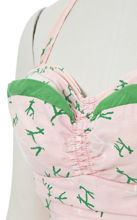 1950s Cole of California Dog/Deer Novelty Print Smocked Swimsuit | small/medium