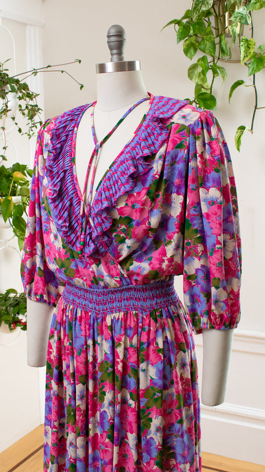 1980s SUSAN FREIS Floral Godet Georgette Dress | small/medium/large