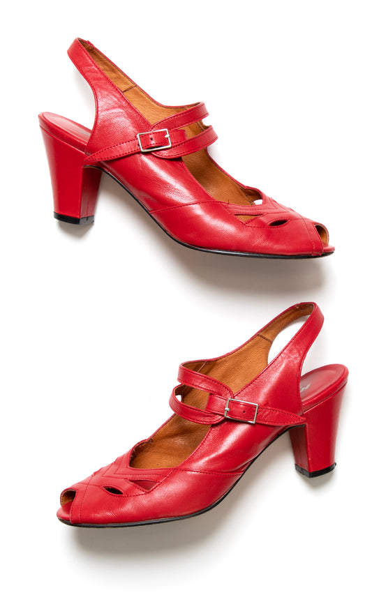 Modern RE-MIX Red Leather "Anita" Heels | size US 6.5