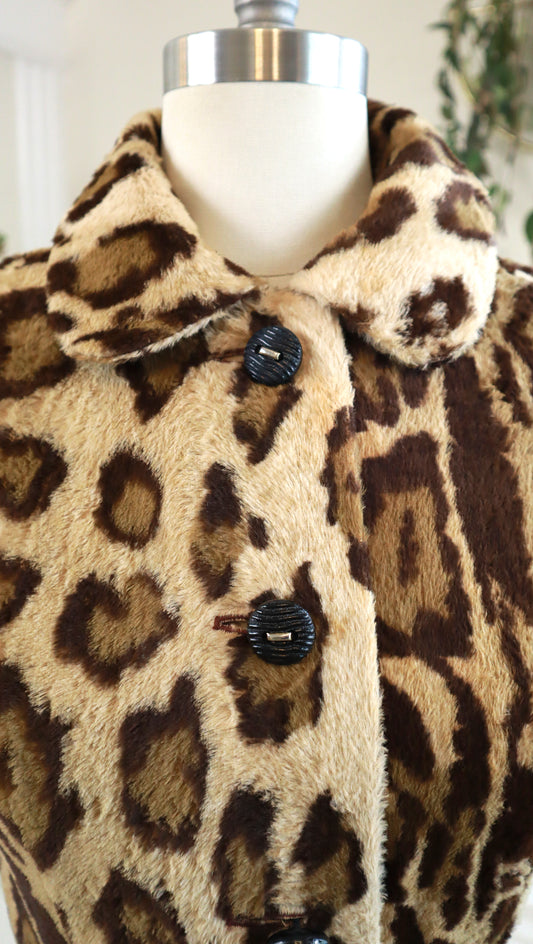 1960s Leopard Print Faux Fur Shirt Dress | medium