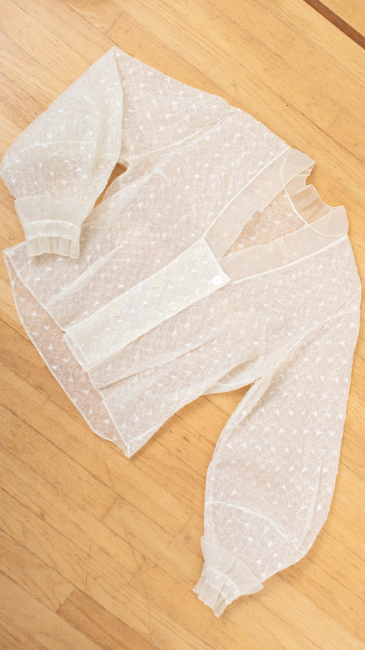 1950s Heart Embroidered Sheer Blouse | medium/large